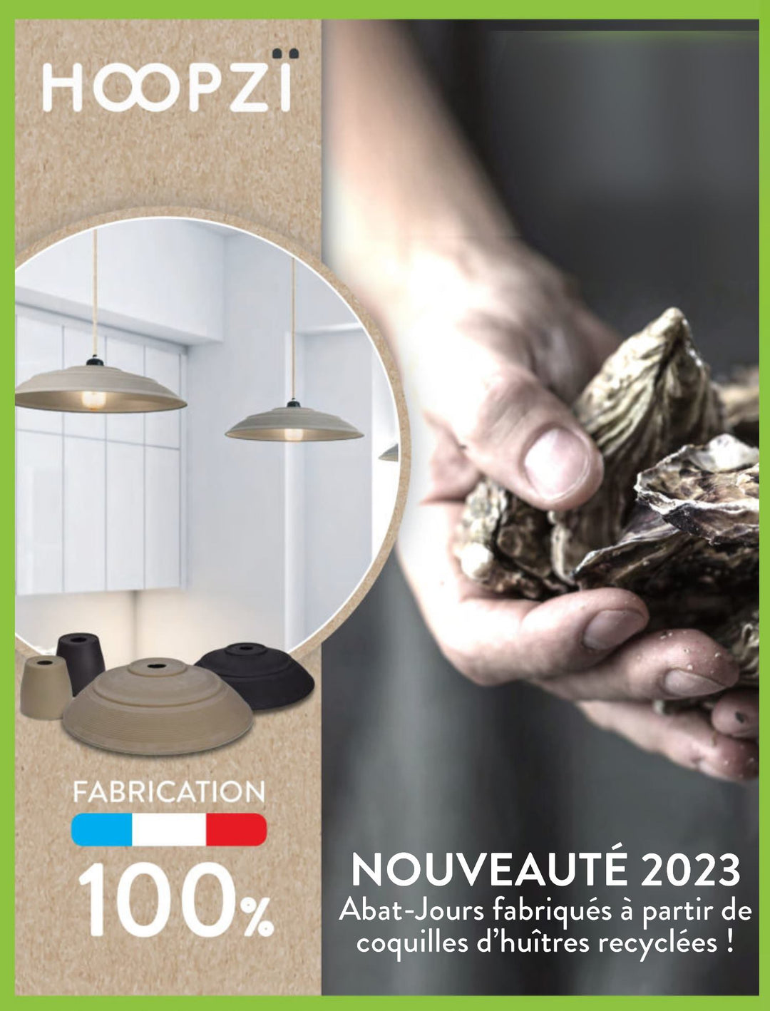Notre équipe s’engage dans ses choix de matériaux et ses lieux de production. Ainsi, depuis notre création nous avons lancer plusieurs innovations pour des produits plus responsables. Nous avons ainsi innové avec de nouveaux abat-jour fabriqués à partir de coquilles d’huîtres recyclées sur nos belles côtes atlantiques françaises.