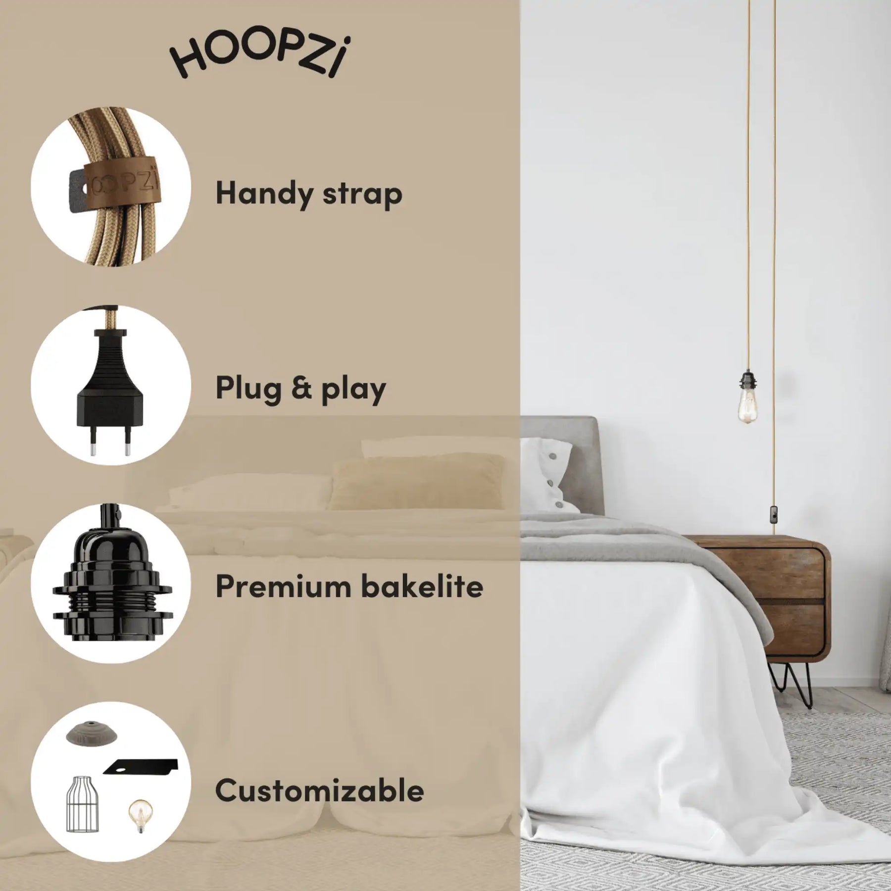 Plongez au cœur de l'exclusivité avec le câble luminaire BALA, signé HOOPZI. Doté d'un cordon en tissu de 4,50 mètres, ce joyau est prêt à éclairer votre univers d'une douce lumière. Chaque câble luminaire est conçu pour s'intégrer harmonieusement à vos espaces, que vous choisissiez de le suspendre comme une lampe baladeuse, de l'accrocher avec élégance ou de le poser discrètement.