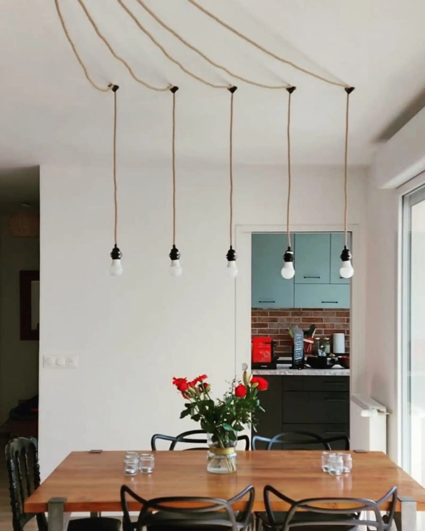 L'éclairage d'une pièce ne se résume pas à une simple fonction utilitaire, c'est également un élément clé de la décoration. La suspension 5 ampoules HANG 5 de HOOPZI révolutionne la y luminaire 5 ampoules en ficelle brute avec son design innovant. Celle-ci, souvent surnommée suspension araignée, présente une configuration à 5 fils, offrant une polyvalence et une audace esthétique inégalées.