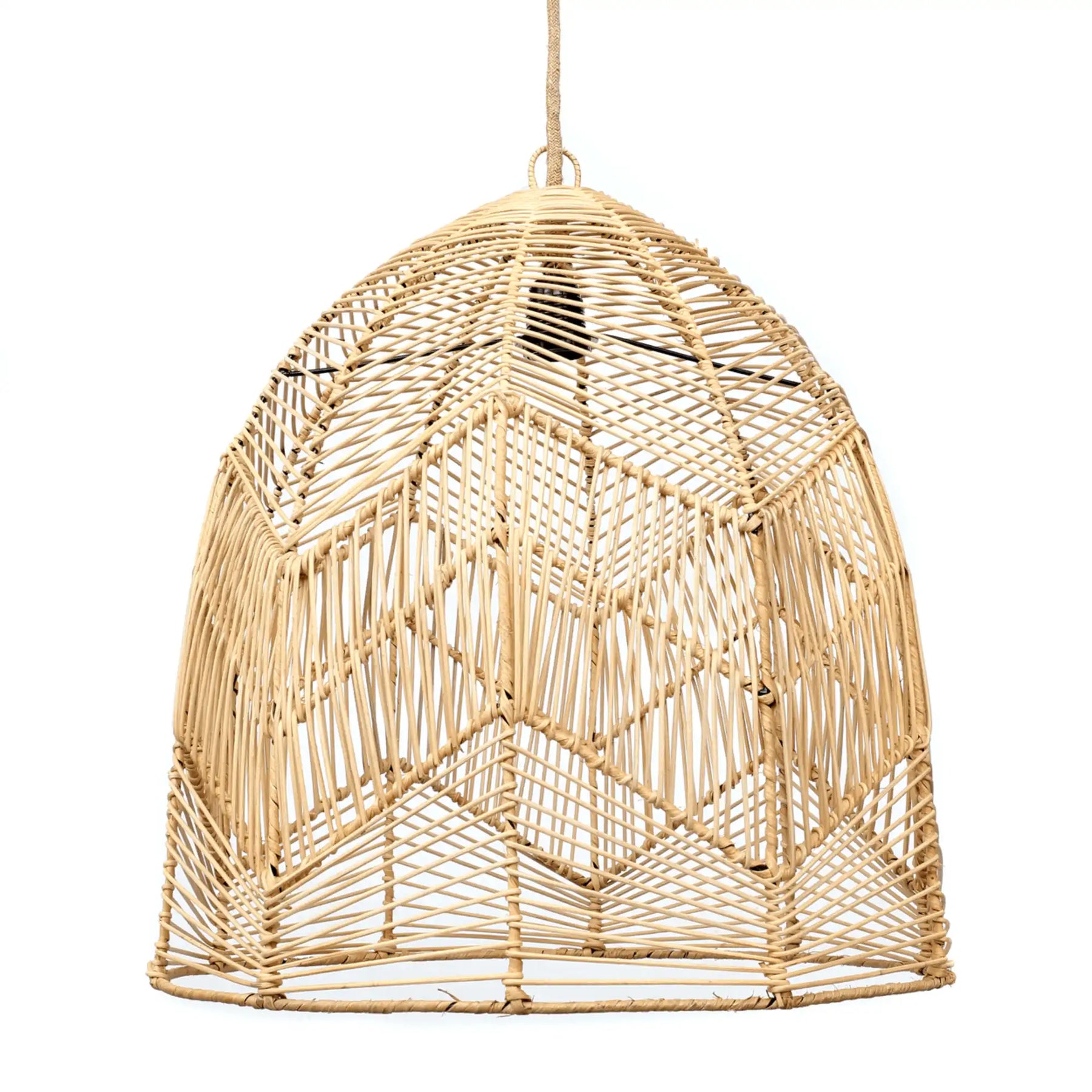 Unser luxuriöser Rattan-Lampenschirm wurde von einem traditionellen balinesischen Handwerker handgefertigt. Es ist eine sehr sorgfältig gefertigte Lampe im Bohemian Chic, die sich perfekt für ein Schlafzimmer, einen überdachten Innenhof oder ein Wohnzimmer eignet.