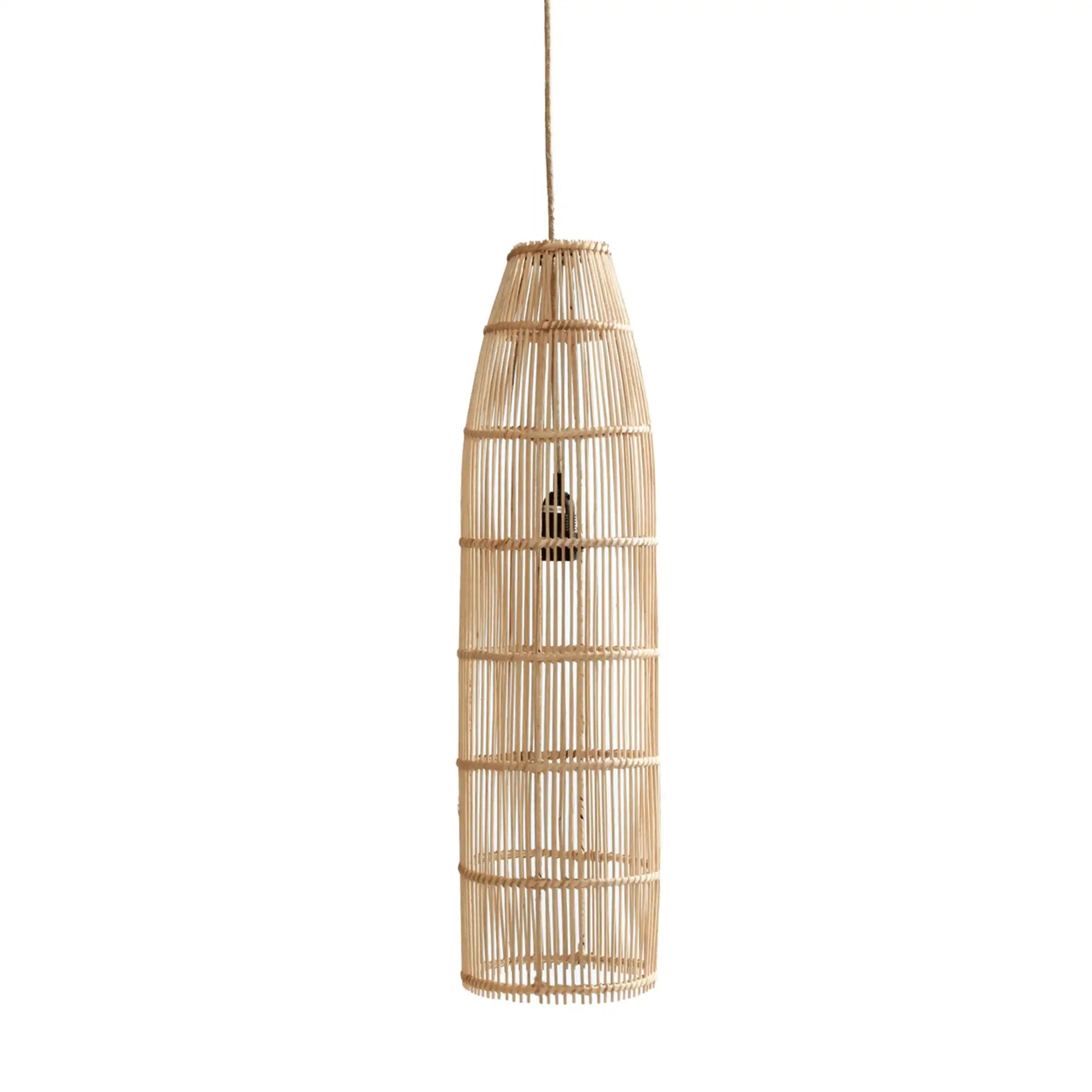 Unser balinesischer Lampenschirm ist von den traditionellen balinesischen Fischfallen inspiriert. Diese 90 cm hohe Boho-Hängelampe wird Ihrem Wohnzimmer oder Schlafzimmer einen unwiderstehlichen Look verleihen.