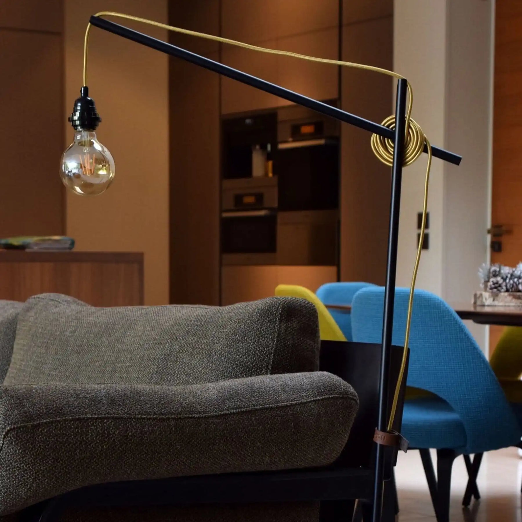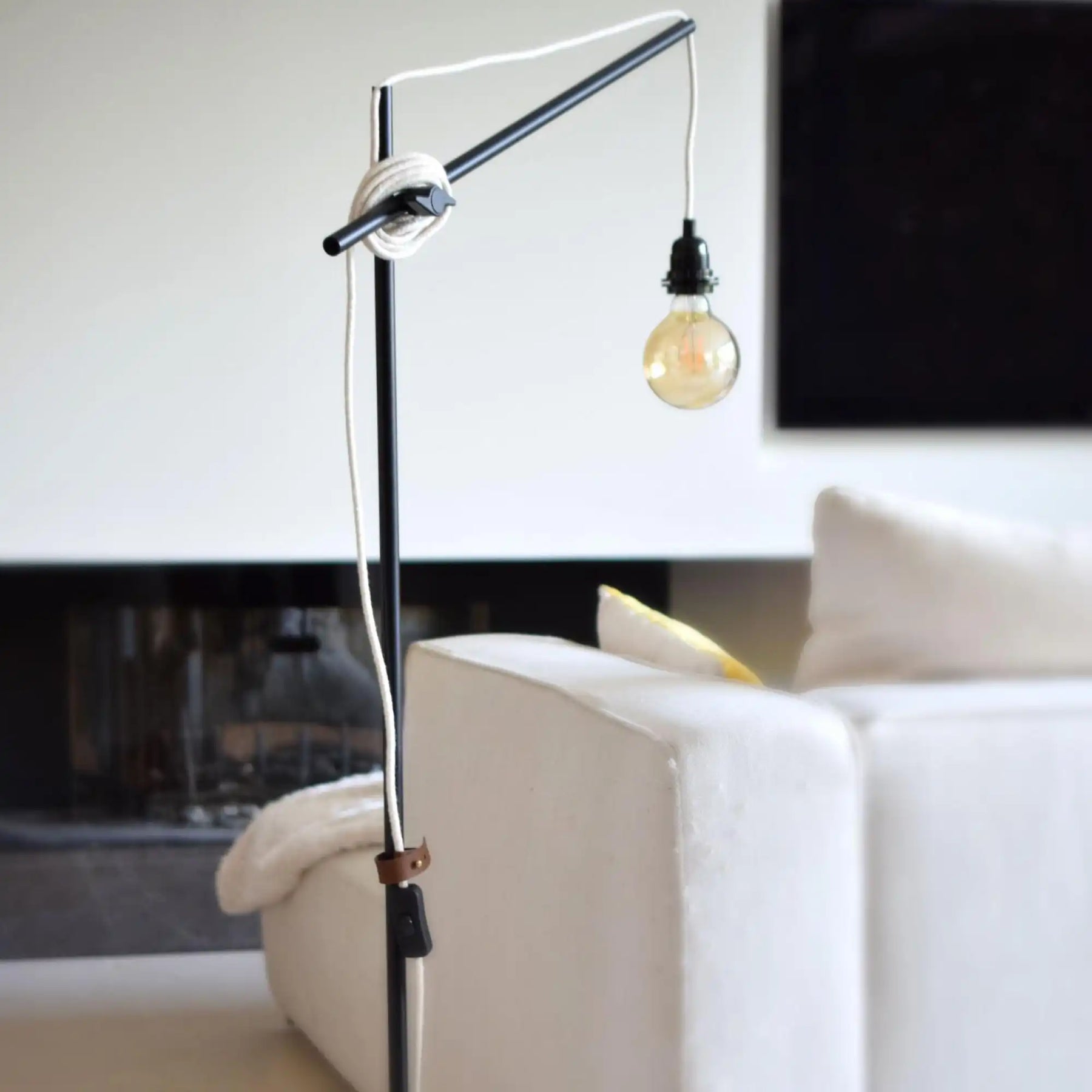 Diese Stehleuchte kann schön am Ende Ihres Sofas, Bettes oder in der Ecke Ihres Zimmers platziert werden. Wählen Sie die Farbe, das Muster und das Material Ihres Kabels für einen Hauch von Deko und Design!