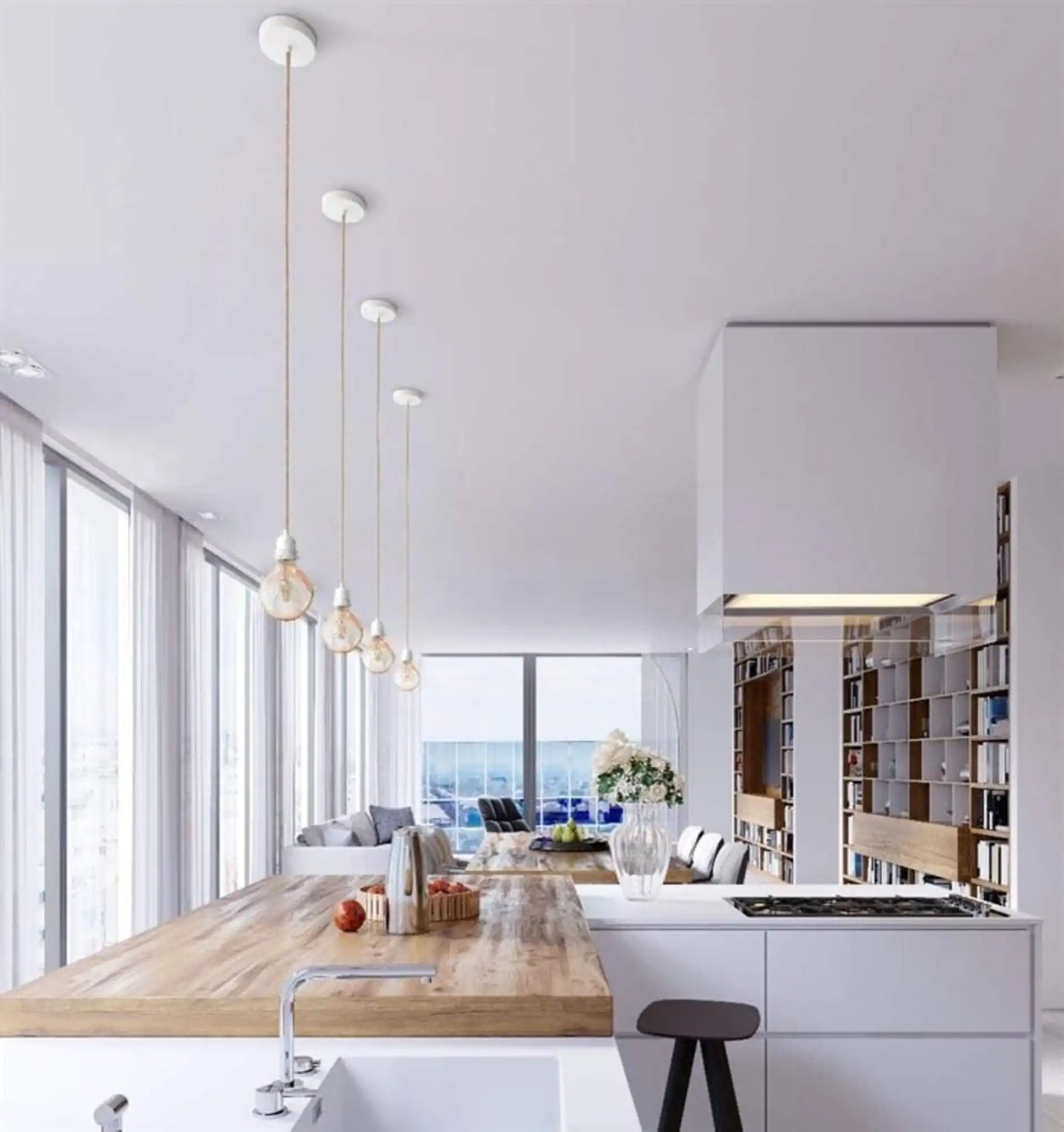 La possibilità di scegliere tra una portalampada bianca o nera ti permette di personalizzare la sospensione in spago grezzo secondo i tuoi gusti e il decoro della tua stanza. La portalampada E27, realizzata in Bakelite, non solo è esteticamente gradevole, ma promette anche una lunga durata.