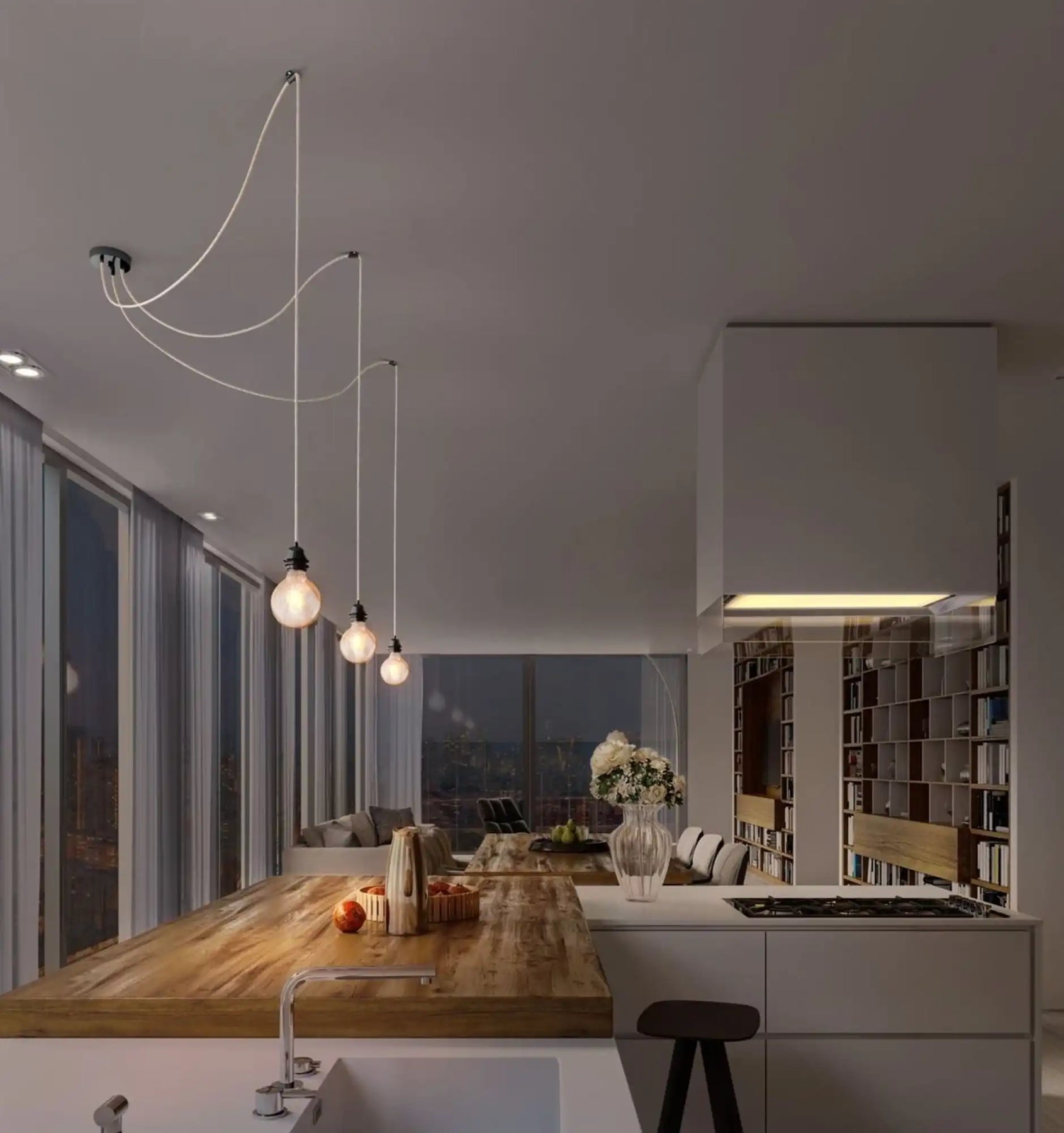 Scopri la magia dell'illuminazione con la sospensione luminosa HANG 3 di HOOPZI. Tre fili armoniosi di 2,50 metri in autentico lino francese si dimostrano con eleganza, aggiungendo una dimensione extra alla bellezza del tuo interno.